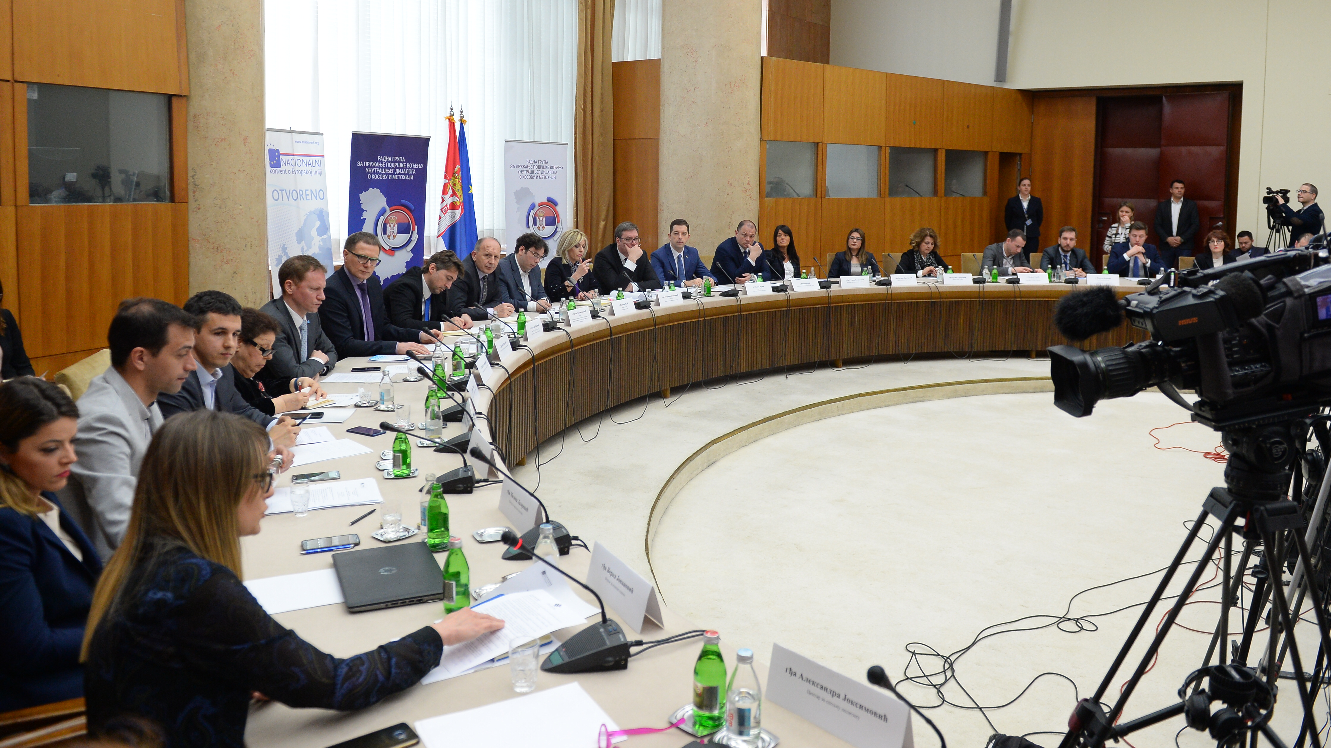 Foto: Tanjug / Tanja Valić / bgFoto: Tanjug / Tanja Valić / bgBeograd, 31. marta 2018. -  Direktor istrazivanja Centra za medjunarodne i bezbednosne poslove – ISAC fonda Igor Novakovic, direktorka Centra za spoljnu politiku Aleksandra Joksimovic i programska direktorka Centra za evropske politike Milena Lazarevic na panelu. U Palati Srbija danas se odrzava "Nacionalni konvent o Evropskoj uniji", sastanak u okviru unutrasnjeg dijaloga. Skup je podeljen na tri panela a na trecem panelu razgovara se o temi "Pitanje KiM u kontekstu evropskih integracija Srbije – Poglavlje 35". FOTO TANJUG/ TANJA VALIC/ bgBeograd, 31. marta 2018. -  - Programski koordinator Inicijative mladih Ivan Djuric, istrazivac pri Centru za interdisciplinarne studije Balkana Stefan Surlic i jedan je od osnivaca Centra za drustveni dijalog i regionalne inicijative Dusan Milenkovic na panelu. U Palati Srbija danas se odrzava "Nacionalni konvent o Evropskoj uniji", sastanak u okviru unutrasnjeg dijaloga. Skup je podeljen na tri panela, a prvi se tice politickih aspekata sveobuhvatnog resenja kosovskog pitanja, dok drugi nosi naziv "Polozaj srpske zajednice na KiM". Na trecem panelu razgovara se o temi "Pitanje KiM u kontekstu evropskih integracija Srbije – Poglavlje 35". FOTO TANJUG/ TANJA VALIC/ bgSastanak RG 35 sa predstavnicima vlast, 2018; Foto: Tanjug / Tanja Valić / bgMinistarka za evropske integracije Jadranka Joksimović; Foto: Tanjug / Tanja Valić / bgFoto: Tanjug / Tanja Valić / bgBeograd, 31. marta 2018. - JPredsednica Beogradskog fonda za politicku izuzetnost Sonja Liht i direktor Komiteta pravnika za ljudska prava (Jukom) Milan Antonijevic na sastanku. Predsednik Srbije Aleksandar Vucic prisustvovao je danas sastanku sa predstavnicima Nacionalnog konventa o Evropskoj uniji (NKEU). Tema sastanka je "Resenje kosovskog pitanja - sansa ili pretnja evropskoj perspektivi Srbije" . FOTO TANJUG/ TANJA VALIC/ bgBeograd, 31. marta 2018. -  Istrazivac Beogradskog centra za bezbednosnu politiku Bojan Elek, naucni saradnik Instituta ekonomskih nauka Marko Malovic i predsednik Drustva za informatiku Srbije Nikola Markovic na panelu. U Palati Srbija danas se odrzava "Nacionalni konvent o Evropskoj uniji", sastanak u okviru unutrasnjeg dijaloga. Skup je podeljen na tri panela a na trecem panelu razgovara se o temi "Pitanje KiM u kontekstu evropskih integracija Srbije – Poglavlje 35". FOTO TANJUG/ TANJA VALIC/ bgFoto: Tanjug / Tanja Valić / bgBeograd, 31. marta 2018. -  Ministarka za evropske integracije Jadranka Joksimovic (L) i direktor Kancelarije za KiM Marko Djuric (D) na sastanku. Predsednik Srbije Aleksandar Vucic (S) prisustvovao je danas sastanku sa predstavnicima Nacionalnog konventa o Evropskoj uniji (NKEU). Tema sastanka je "Resenje kosovskog pitanja - sansa ili pretnja evropskoj perspektivi Srbije" . FOTO TANJUG/ TANJA VALIC/ bg