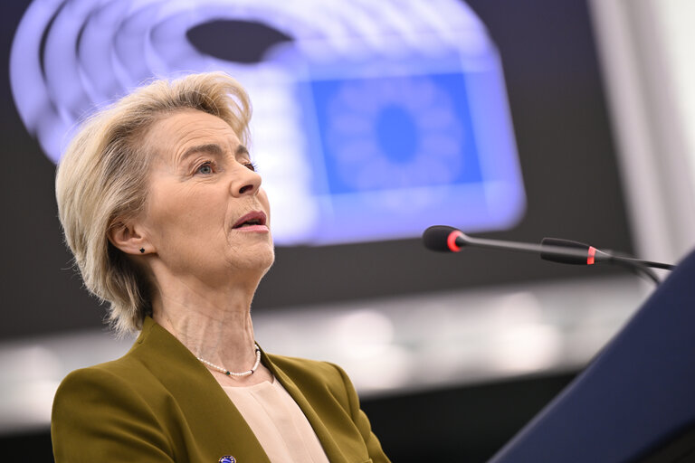 Ursula fon der Lajen u obraćanju poslanicima Evropskog parlamenta, 22. januar 2025; Foto: Evropski parlament
