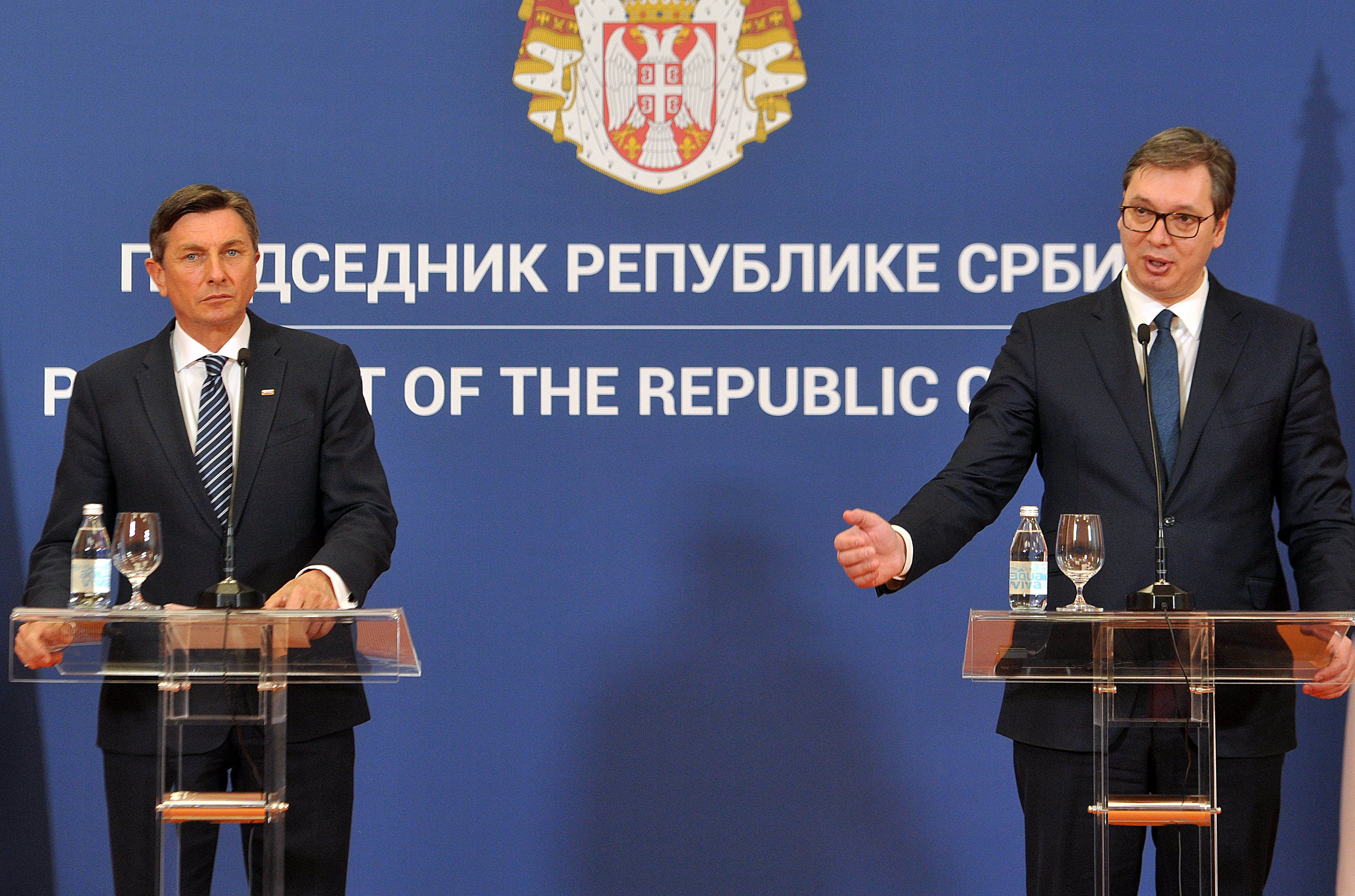 “To se tiče odnosa u regionu, u prvom redu se odnosi na dijalog Beograda i Prištine. Kao tvoj i prijatelj tvoje države, podržavam taj dijalog i ne vidim nikakvu alternativu dijalogu. Ne znam kako i kada će to da završi, to zavisi od bilateralnih razgovora i pregovora dve strane, ali ono što može Slovenija, kao prijatelj sa svim narodima i državama u regionu, da pomogne, ja sam ponudio iskrenu podršku”, rekao je Pahor, obraćajući se Vučiću.