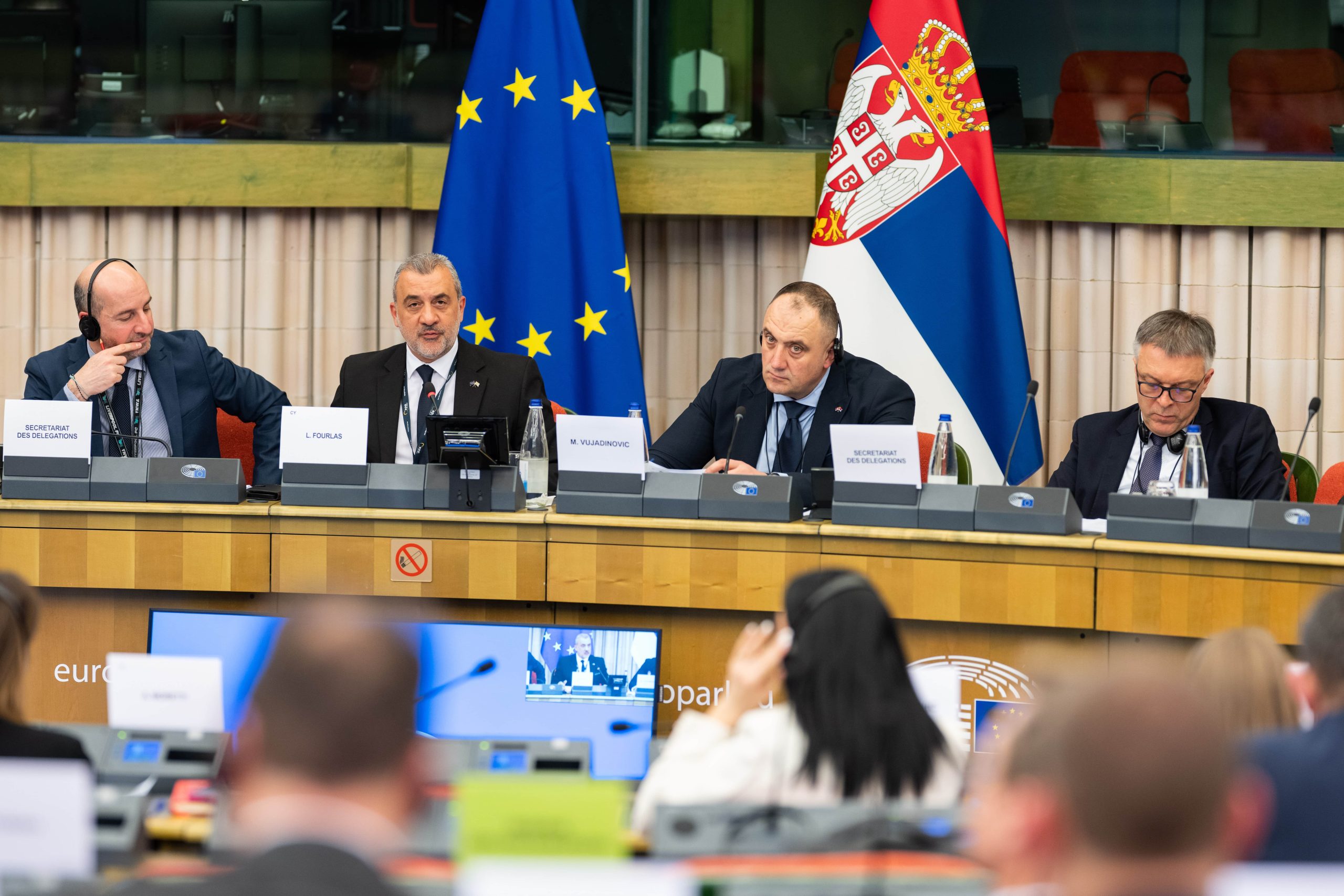 Sastanku zajednički predsedavaju Lukas Furlas, predsedavajući Delegacije Evropskog parlamenta, i Milimir Vujadinović, predsedavajući Delegacije Narodne skupštine.