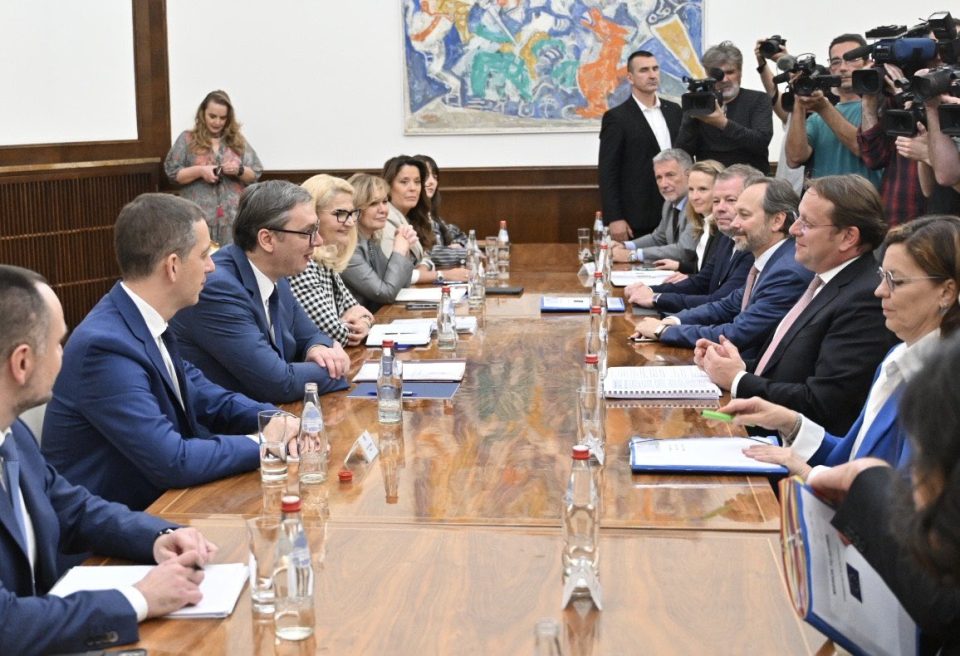 Sastanak predstavnika vlasti Srbije sa komesarom za proširenje Oliverom Varheljijem, maj 2024; Foto: X / @OliverVarhelyi